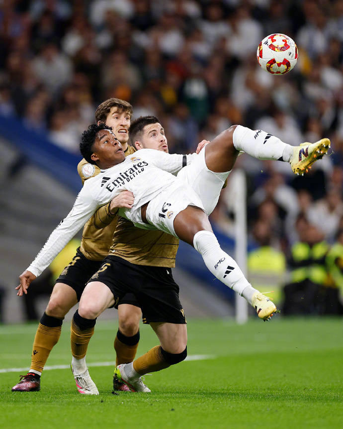 在西班牙国王杯半决赛次回合的一场惊心动魄的对决中,皇家马德里与皇家社会上演了一场进球大战,双方鏖战至加时赛,最终皇马以 4-4 的比分与皇家社会握手言和,好在凭借两回合总比分 5-4 的优势,皇马惊险晋级决赛。此役过后,皇马依旧保留着冲击赛季三冠王的希望,不过他们的征程注定荆棘密布。