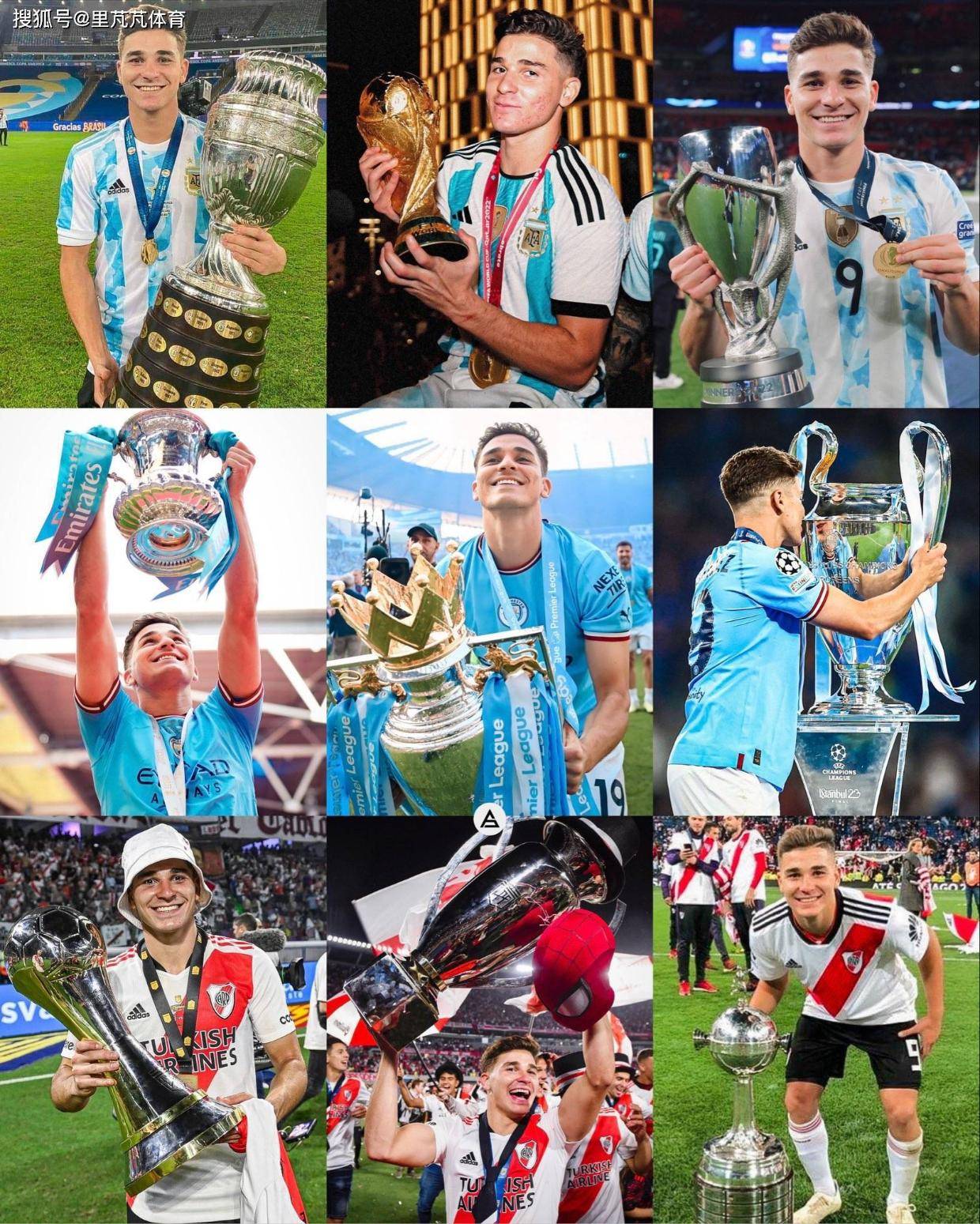 与之相反的例子则是阿尔瓦雷斯的运气。入到瓜帅麾下后他就开启了自己的夺冠之旅,从俱乐部层面的大满贯、到国家队层面的奖杯全收,阿尔瓦雷斯的确是够疯狂,哪怕是见多识广的老大哥梅西都要对他奖杯数刮目相看的,的确是个起点爆炸顺的好运之星。不过,阿尔瓦雷斯是配的上奖杯加冕,他的努力及打出个人成就很是不俗,每次踏上颁奖礼几乎都有他的贡献这就够了。