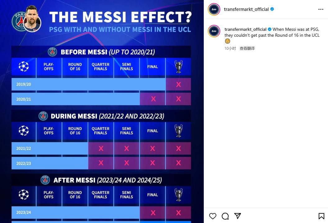 然而,现实十分残酷。梅西“散步式”的比赛风格,让巴黎不得不为此付出代价,几乎每场比赛都像少一人作战。无论是姆巴佩,还是内马尔,再强的个人能力,也难以弥补梅西带来的阵容缺陷。结果显而易见,连续两年巴黎在欧冠十六强遭遇淘汰,即使在没有姆巴佩、内马尔的情况下,以梅西为核心的打法依然难以突破困境。在法国内杯赛场,缺少这些核心人物的巴黎队也连续两年止步十六强。
